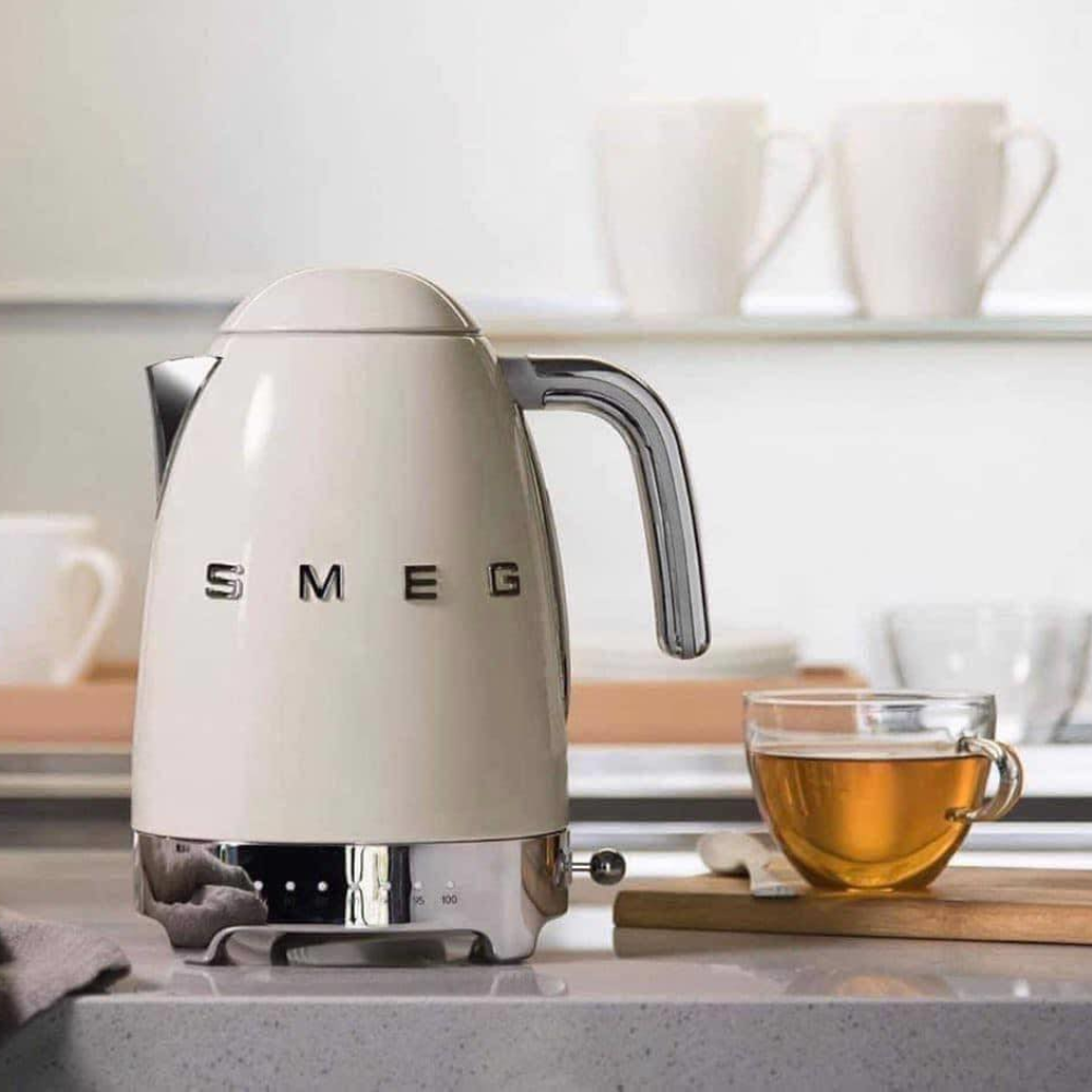 SMEG KLF04CREU màu kem có dung tích 1.7L, công suất 2400W, nổi bật với thiết kế Retro 50s Iconic sang trọng và tính năng điều chỉnh nhiệt độ 7 mức (50–100°C). Phù hợp cho người yêu trà, cà phê và không gian bếp tinh tế.