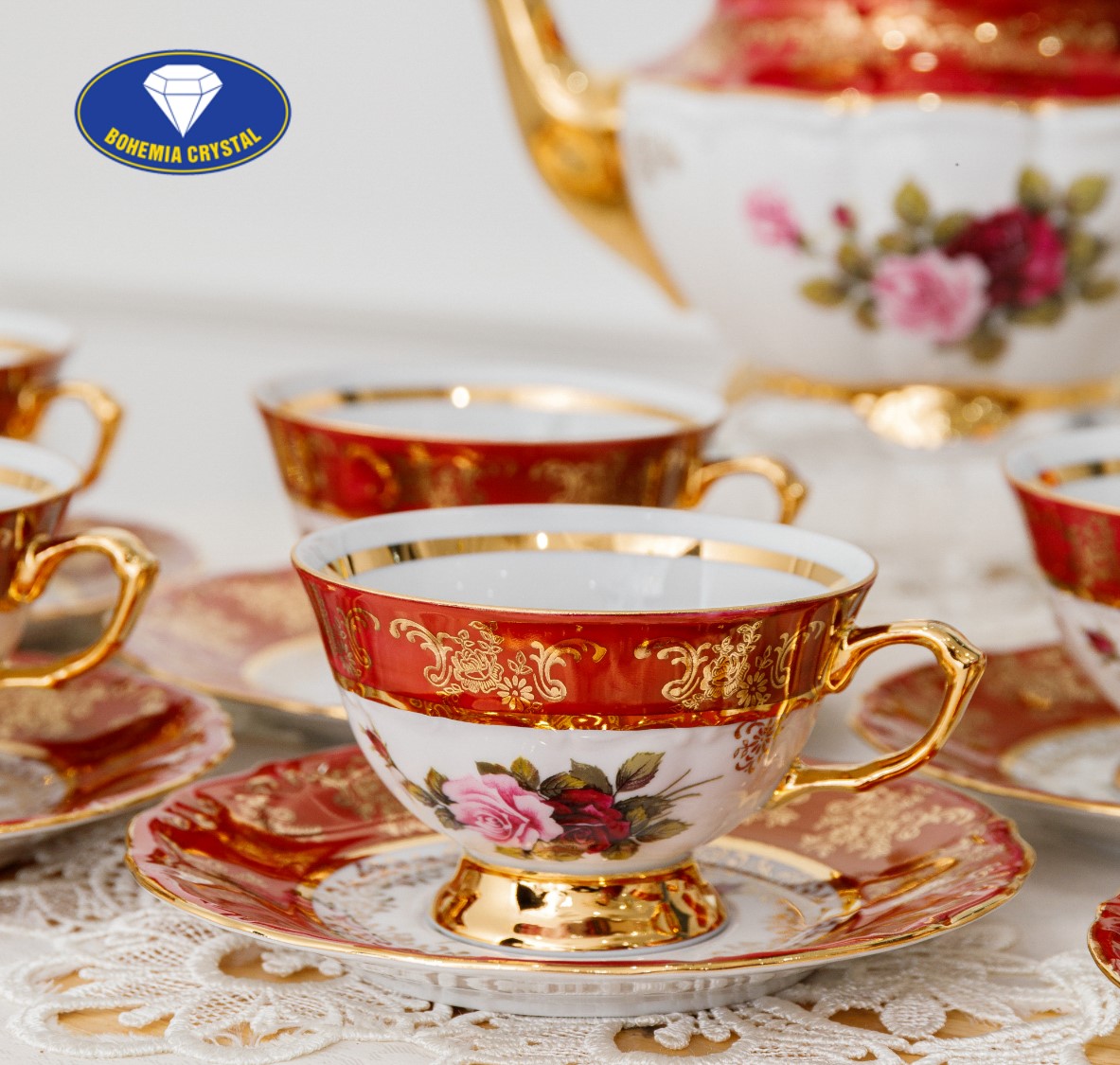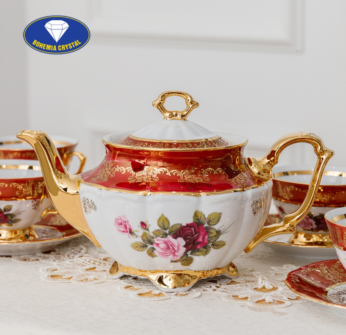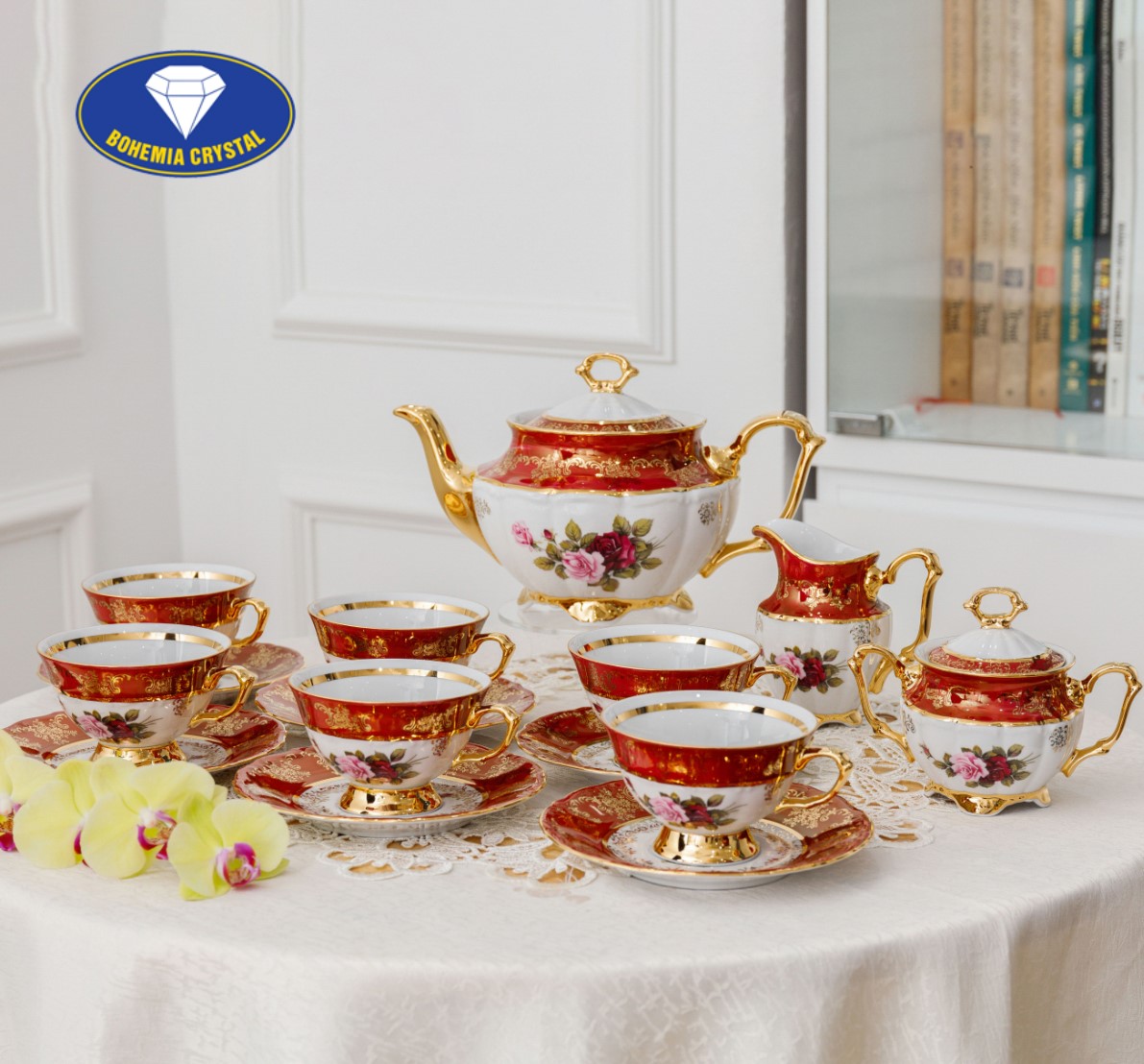 Bộ ấm trà sứ Tiệp nhập khẩu CH Séc thường rất nhẹ, thành sứ mỏng nên khi cầm lên tay rất thoải mái. Các họa tiết vẽ tỉ mỉ bằng tay và mạ dung dịch vàng 24k đem lại nét đẹp riêng cho mỗi bộ sản phẩm. Kiểu dáng bộ ấm trà Tiệp được thiết kế theo phong cách hoàng gia châu Âu cổ điển, mang nét quý phái, sang trọng, phù hợp cho những buổi thưởng trà chiều hoặc tiếp khách quý.