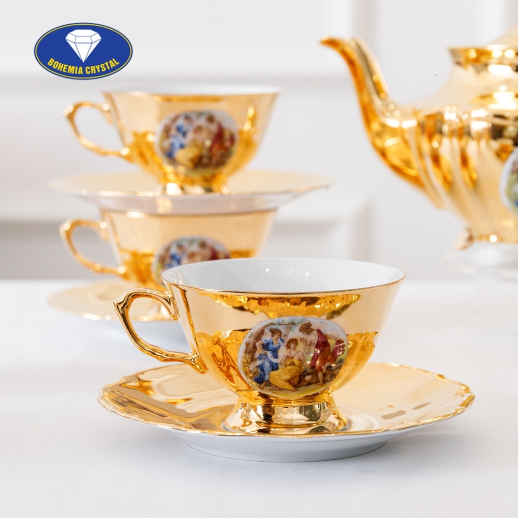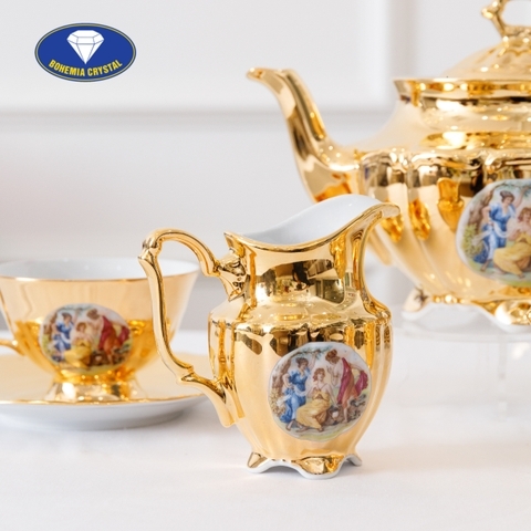 Bộ ấm trà sứ Tiệp nhập khẩu CH Séc thường rất nhẹ, thành sứ mỏng nên khi cầm lên tay rất thoải mái. Các họa tiết vẽ tỉ mỉ bằng tay và mạ vàng 14k đem lại nét đẹp riêng cho mỗi bộ sản phẩm. Kiểu dáng bộ ấm trà Tiệp được thiết kế theo phong cách hoàng gia châu Âu cổ điển, mang nét quý phái, sang trọng, phù hợp cho những buổi thưởng trà chiều hoặc tiếp khách quý.