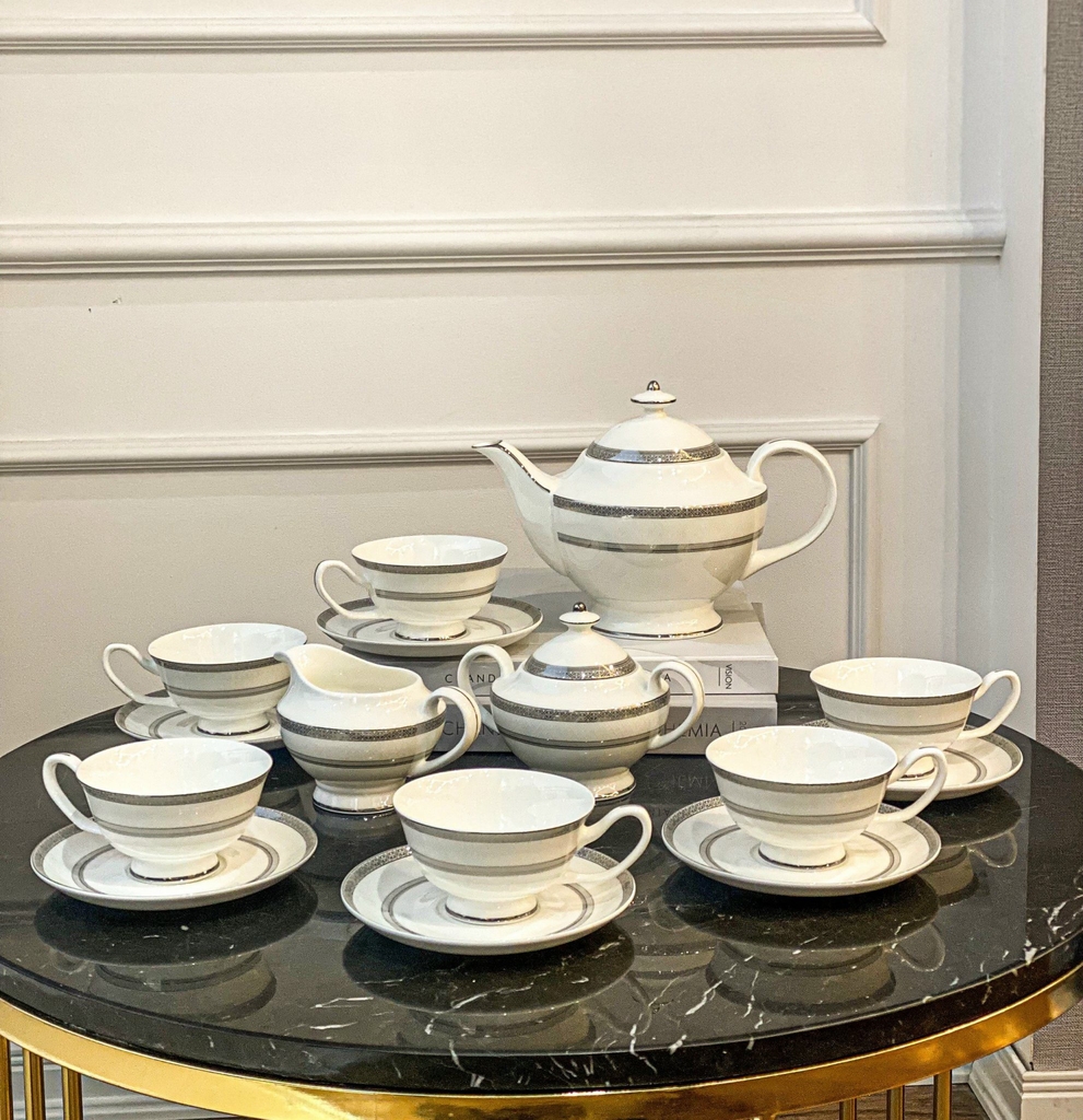 Bộ cà phê Bạch Kim Anh được thiết kế theo phong cách châu Âu hiện đại, nổi bật với đường viền bạch kim tinh tế. Sản phẩm không chỉ là bộ tách dùng để uống cà phê mà còn thể hiện gu thẩm mỹ, phong cách sống thanh lịch và đẳng cấp của người sử dụng.