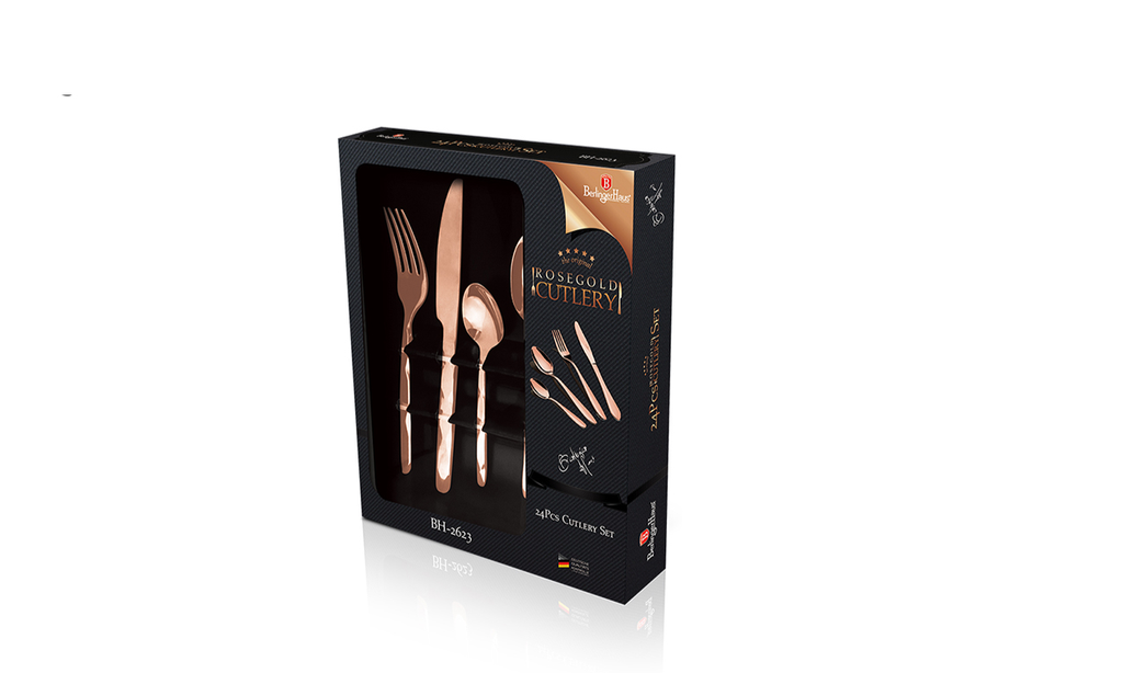 Bộ dao thìa dĩa 24 chi tiết Berlinger Haus BH/2623A là một bộ sản phẩm tuyệt vời và hoàn hảo cho mọi gia đình. Với màu vàng hồng sang trọng, bộ sản phẩm này không chỉ là một công cụ cần thiết trong bếp mà còn là một phần trang trí đẹp mắt cho bàn ăn.