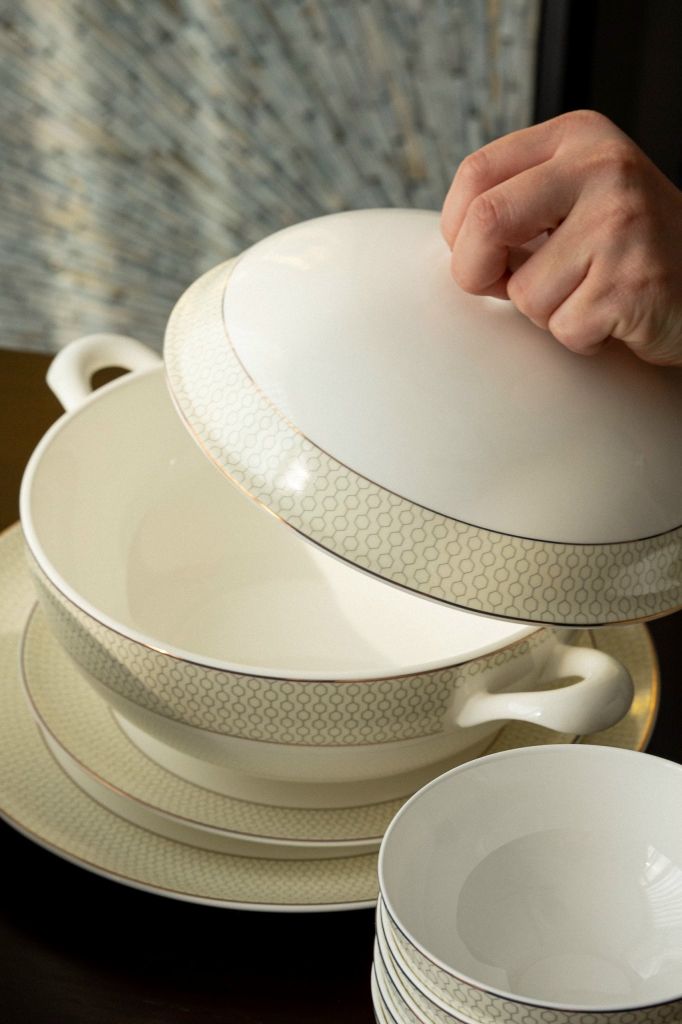 Bộ đồ ăn Aris 50sp mang phong cách hiện đại, tối giản nhưng vẫn toát lên vẻ sang trọng. Bộ sản phẩm không chỉ đáp ứng nhu cầu ăn uống hằng ngày mà còn góp phần nâng tầm không gian bàn ăn, thể hiện gu thẩm mỹ tinh tế của gia chủ.