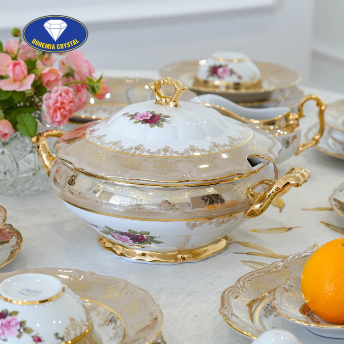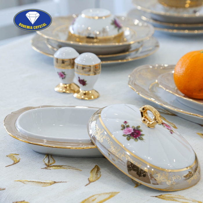 Bộ đồ ăn sứ Tiệp cao cấp MT JS HL CE nhập khẩu từ Cộng hòa Séc, được chế tác từ chất liệu sứ Tiệp cao cấp. Lớp men sáng bóng và thành sứ mỏng tạo cảm giác thoải mái khi cầm trên tay. Sự trau chuốt trong quá trình chế tác và mạnh mẽ trong thiết kế tạo nên sự tinh xảo và đẳng cấp của sản phẩm. Họa tiết hoa hồng trên bộ đồ ăn sứ MT JS HL CE được vẽ thủ công bằng tay, với đường nét sắc nét và tính thẩm mỹ cao. Bộ đồ ăn sứ MT JS HL CE là một sự lựa chọn hoàn hảo để nâng tầm không gian sống và tạo điểm nhấn độc đáo cho mỗi gia đình.
