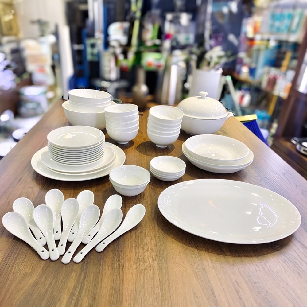 Bộ đồ ăn sứ xương trắng trơn 50 sản phẩm đáp ứng đa dạng nhu cầu: