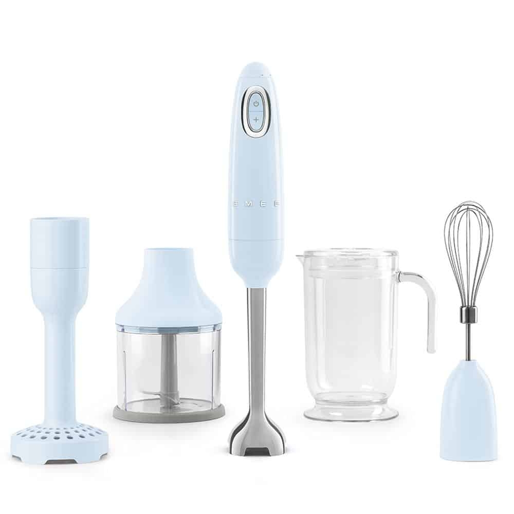 Set máy xay cầm tay SMEG HBF02PBEU màu xanh Pastel Blue là giải pháp hoàn hảo cho căn bếp hiện đại. Với công suất mạnh mẽ, lưỡi dao FlowBlend™ và bộ phụ kiện đa năng, sản phẩm giúp bạn nấu ăn nhanh chóng, tiện lợi và thẩm mỹ.