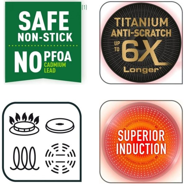 Chảo chống dính Tefal Excellence G26906 được sản xuất theo tiêu chuẩn hàng tiêu dùng châu âu. Với lớp chống dính Titanium Excellence giúp cho việc chế biến được các món ăn dễ dàng, hấp dẫn và ngon hơn. Với lớp chống dính này khách hàng thảo mái chế biến các món ăn theo ý muốn mà không cần phải quá lo lắng cho việc chùi rửa sau khi nấu nướng. Lớp phủ chống dính và chống xước titan mới, là kết quả của nhiều năm phát triển, có tuổi thọ gấp 6 lần so với các lớp phủ tiêu chuẩn của Tefal.