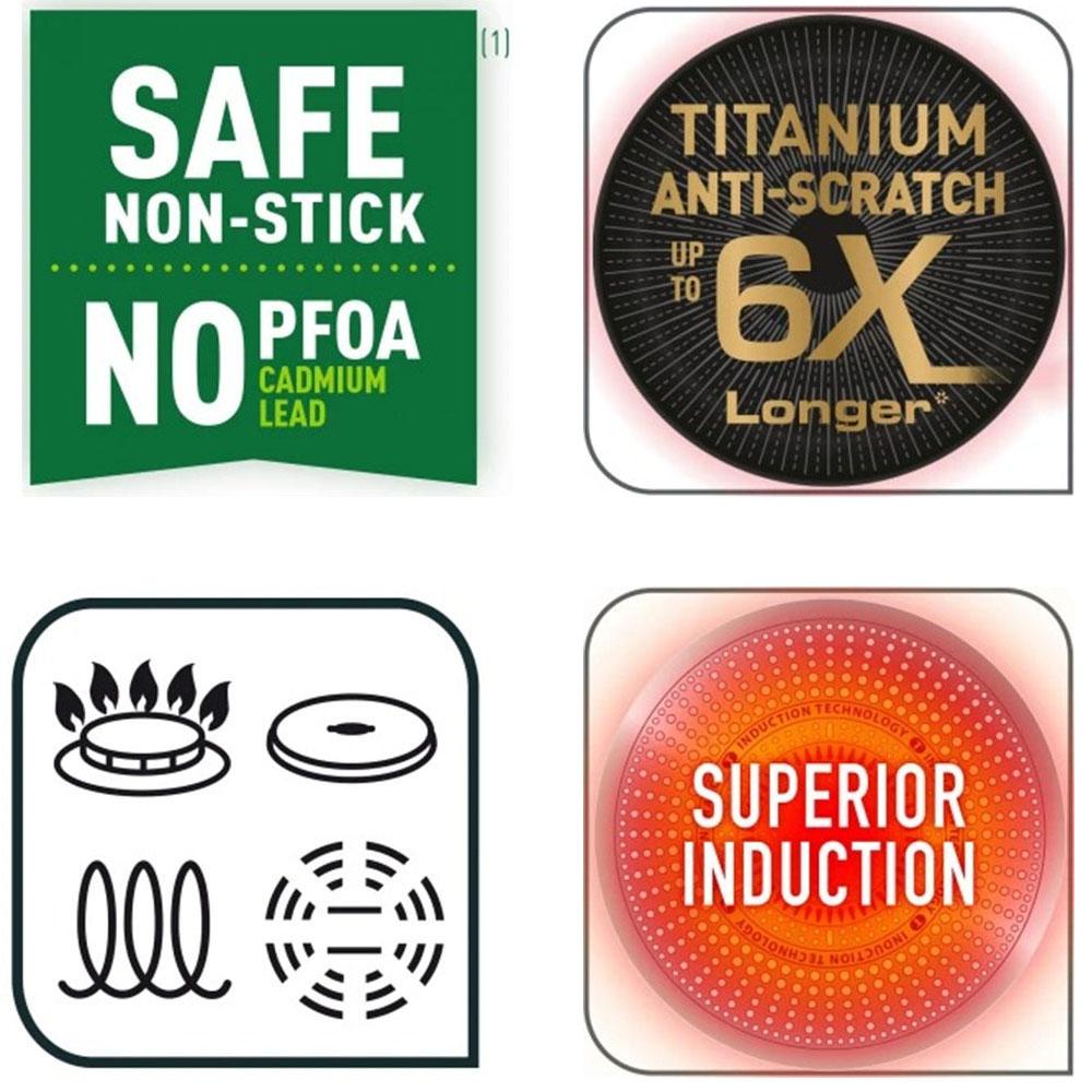 Chảo chống dính Tefal Excellence G26902 được sản xuất theo tiêu chuẩn hàng tiêu dùng châu âu. Với lớp chống dính Titanium Excellence giúp cho việc chế biến được các món ăn dễ dàng, hấp dẫn và ngon hơn. Với lớp chống dính này khách hàng thảo mái chế biến các món ăn theo ý muốn mà không cần phải quá lo lắng cho việc chùi rửa sau khi nấu nướng. Lớp phủ chống dính và chống xước titan mới, là kết quả của nhiều năm phát triển, có tuổi thọ gấp 6 lần so với các lớp phủ tiêu chuẩn của Tefal.