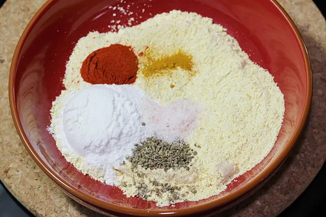 Gia vị: Garam masala, nghệ và bột ớt đỏ là những loại gia vị dùng để làm nhân khoai tây. Đối với bột bánh, hạt carom (ajwain) được sử dụng tương tự như các công thức pakora khác. Bạn có thể điều chỉnh tất cả các loại gia vị này cho phù hợp với khẩu vị của mình.