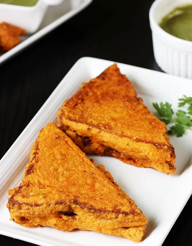 Bánh mì nhân nhồi được làm tương tự như bánh mì cuộn và bánh mì bonda nhưng chúng không giống nhau. Những chiếc bánh mì pakora chiên giòn thơm ngon này rất nặng và rất phù hợp làm món ăn nhẹ cuối tuần hoặc bữa tiệc. Ăn kèm với tương ớt rau mùi, Tương ớt xanh, Tương ớt bạc hà hoặc với Tương ớt tỏi đỏ.