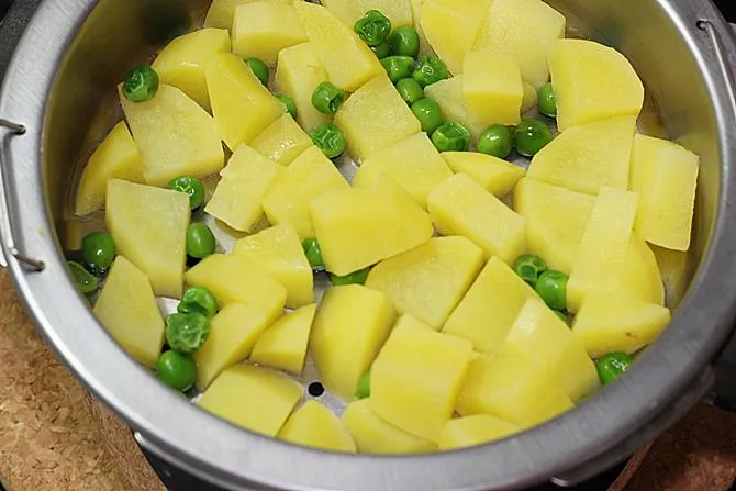 Bạn cũng có thể nấu cả củ khoai tây trong nồi áp suất trong 2 đến 3 tiếng còi. Khi áp suất giảm bớt thì tháo ra và kiểm tra. Họ phải được ngã ba đấu thầu. Để luộc chúng trong nồi ăn liền, hãy đặt toàn bộ khoai tây lên một chiếc giá ba chân và nấu chúng trong áp suất trong 5 đến 7 phút tùy thuộc vào kích cỡ.
