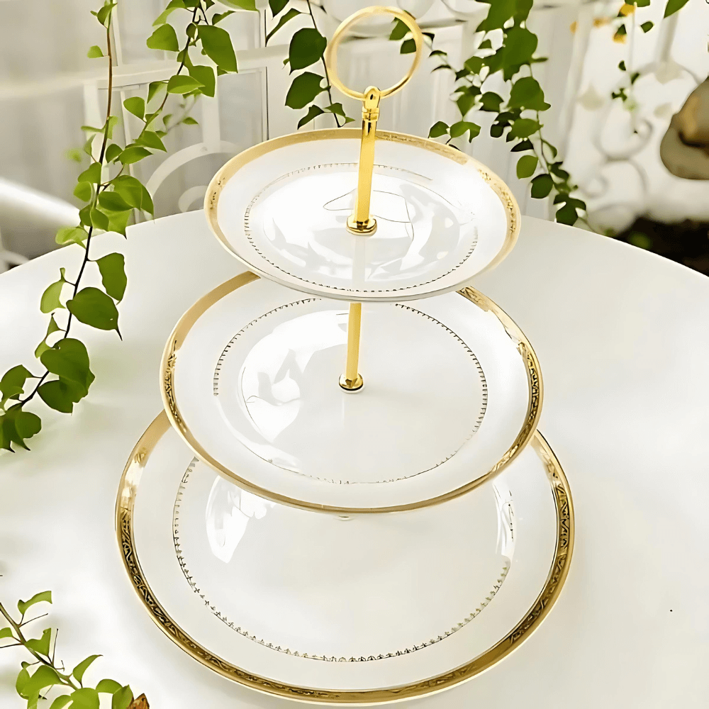 Đĩa 3 tầng Hoàng gia Anh SSJ được lấy cảm hứng từ phong cách quý tộc châu Âu, nơi đề cao sự tinh tế và sang trọng trong từng chi tiết. Sản phẩm không chỉ là dụng cụ bày biện thực phẩm mà còn là điểm nhấn trang trí cho bàn tiệc, bàn trà và không gian tiếp khách.