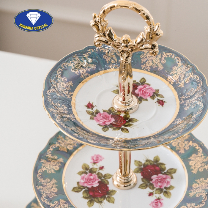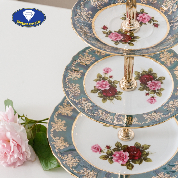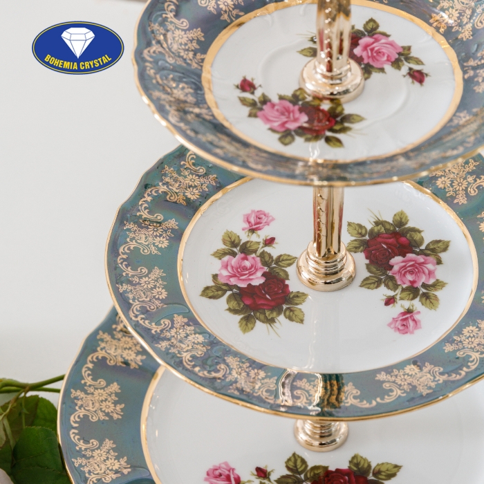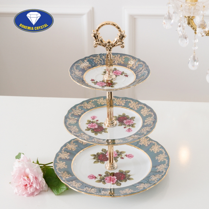 Đĩa sứ 3 tầng STOJAN ZL CE vô cùng tiện dụng với thanh giữ chắc chắn bằng đồng kèm với bộ 3 chiếc đĩa với các kích thước khác nhau thích hợp để bạn có thể bày biện hoa quả cùng với những chiếc bánh ngọt tráng miệng bắt mắt.