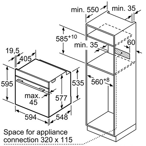 - Lò nướng Bosch này được thiết kế kiểu âm tủ gọn gàng, sang trọng theo phong cách Châu Âu, nâng cao tính thẩm mỹ cho không gian bếp.