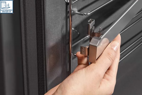 Hệ thống giá đỡ thông thường chỉ cung cấp tối đa ba vị trí cho đường ray kính kéo mở. Bosch cũng cung cấp đường ray kính kéo mở độc lập với mức độ. Các thanh ray có thể được thêm vào tất cả các tầng bao gồm cả cấp độ nướng, giúp việc nướng trở nên thuận tiện hơn. Thanh ray dễ dàng lắp đặt và tháo gỡ..
