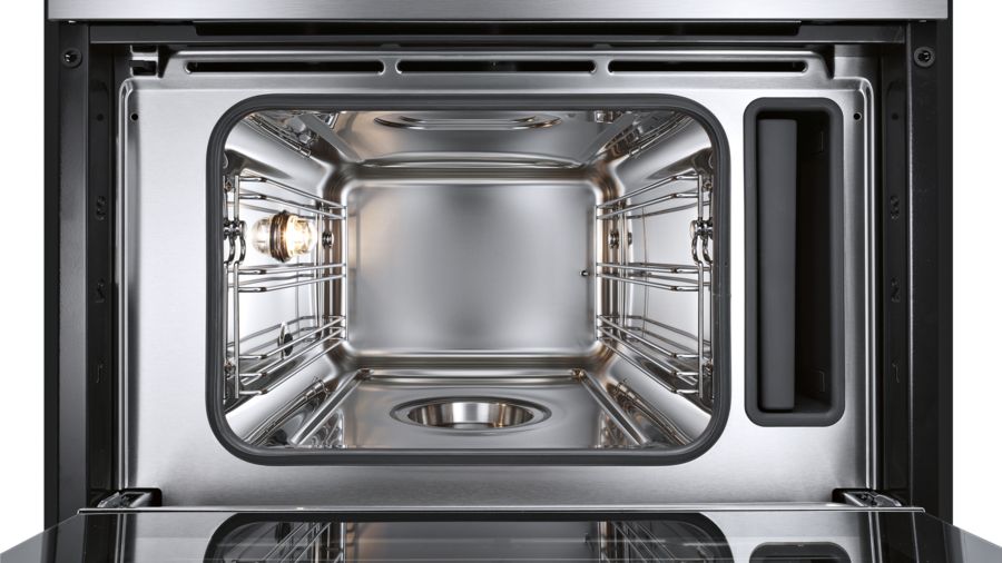 Lò nướng kính đen Bosch HBA5360B0 của bạn có vài vết bẩn và bạn muốn làm vệ sinh một cách nhanh chóng? Với tính năng hỗ trợ làm sạch Cleaning Asistance, bạn chỉ cần cho 400ml nước và một giọt nước rửa vào đáy khoang lò và cài đặt chế độ làm nóng, nhiệt độ và thời gian thích hợp. Hệ thống làm sạch than thiện với môi trường sẽ làm mềm các mảnh vụ đồ ăn thừa gây ra trong quá trình nấu, và bạn chỉ cần lau sạch một cách dễ dàng.