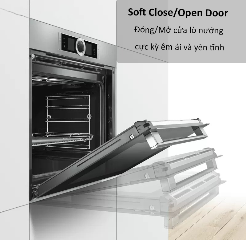 Việc đóng mở cửa lò nướng giờ đây trở nên thuận tiện hơn bao giờ hết, với cơ chế cách âm đặc biệt kèm theo bộ trợ giảm giúp cửa không bị đóng sầm gây khó chịu.