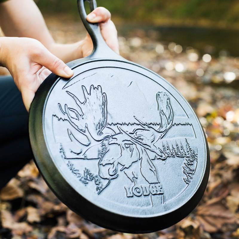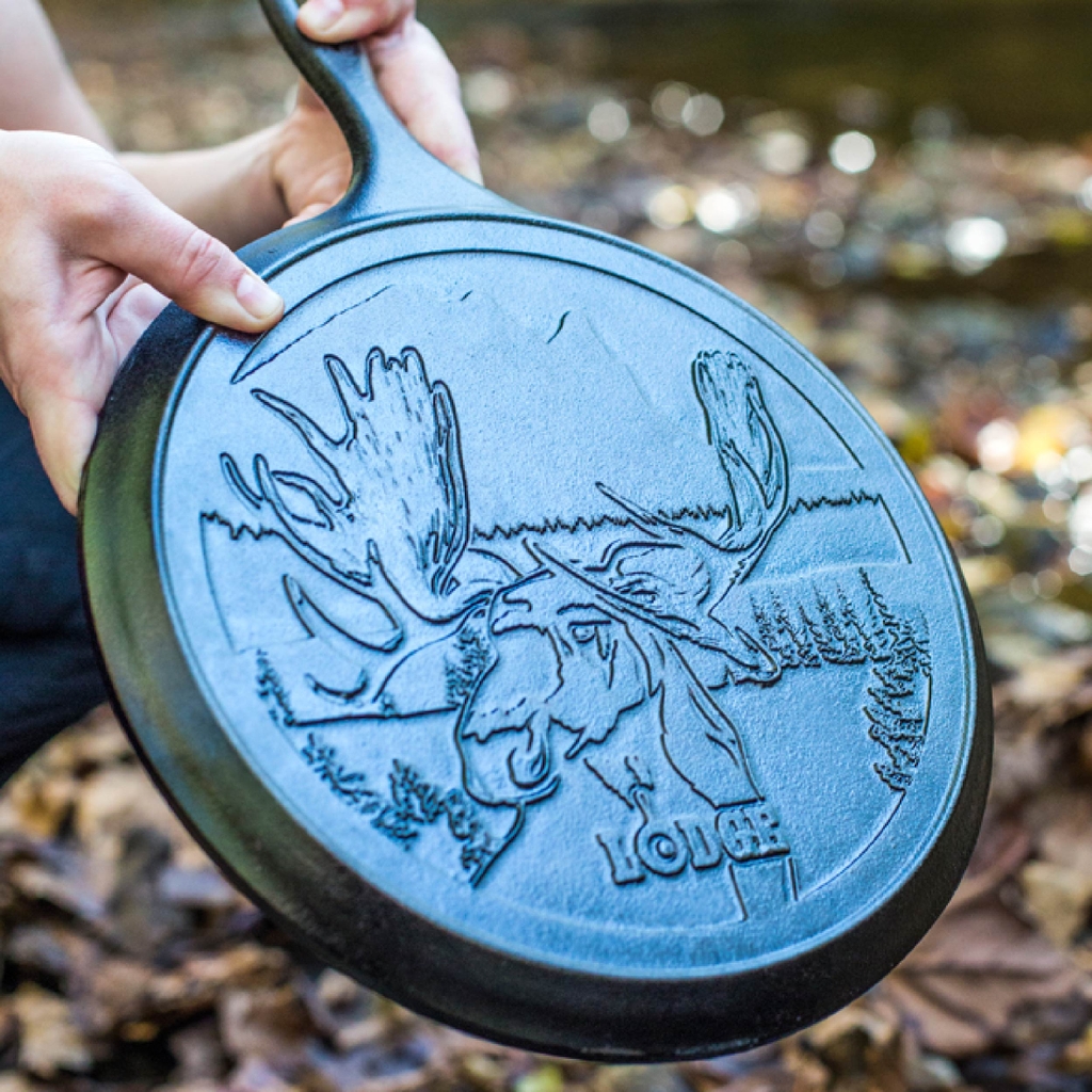 Chảo gang Lodge L9OGWLMO 26cm thiết kế đáy khắc hình nai độc đáo, vừa tiện dụng vừa trang trí.