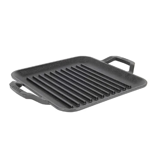 Chảo gang Lodge LC11SGP 28cm thiết kế vuông rộng rãi, lý tưởng để nướng thịt, cá, rau củ.