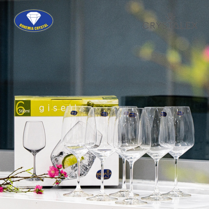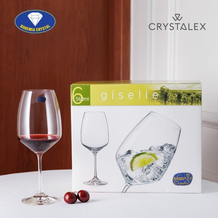 - Bề mặt lớn của ly uống rượu vang Giselle giúp giải phóng sự tinh tế của cả hương vị và hương thơm. Thân cao, miệng thuôn nhỏ, vành ly mỏng mịn, dòng ly pha lê nhập khẩu Tiệp nâng cao trải nghiệm khi thưởng thức rượu.