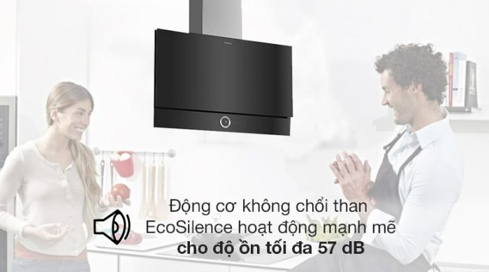 Máy Hút Mùi Bosch DWF97RV60B Series 8 hoạt động êm ái với động cơ EcoSilence với độ ồn ở mức tối ưu, giúp không gian sinh hoạt của gia đình bạn luôn được yên tĩnh.