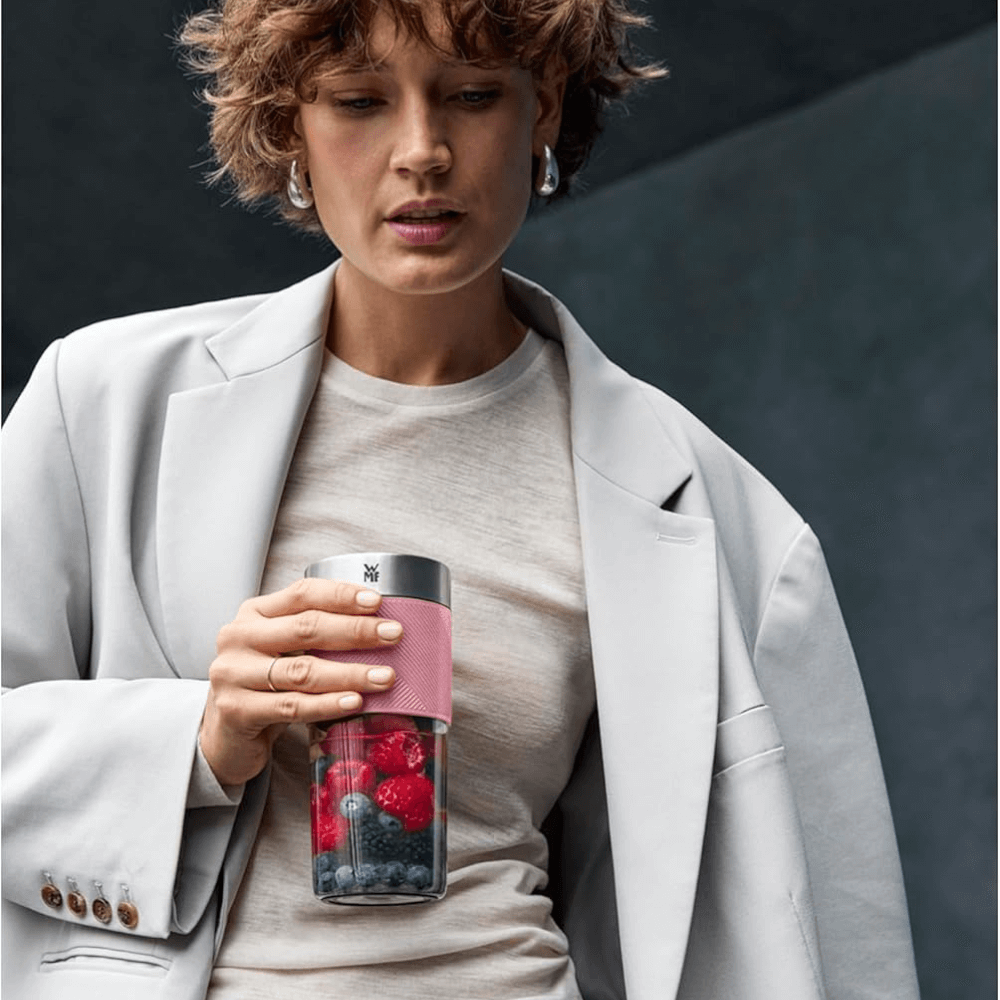 Với máy xay sinh tố WMF Küchenminis Mix on the go màu hồng, bạn có thể tự tay pha chế ly smoothie tươi mát chỉ trong vài giây – ngay tại nhà, văn phòng hoặc bất kỳ đâu. Thiết kế nhỏ gọn nhưng sở hữu công suất 300W, sản phẩm giúp xay mịn trái cây, đá viên và các loại hạt nhỏ chỉ trong vài thao tác.