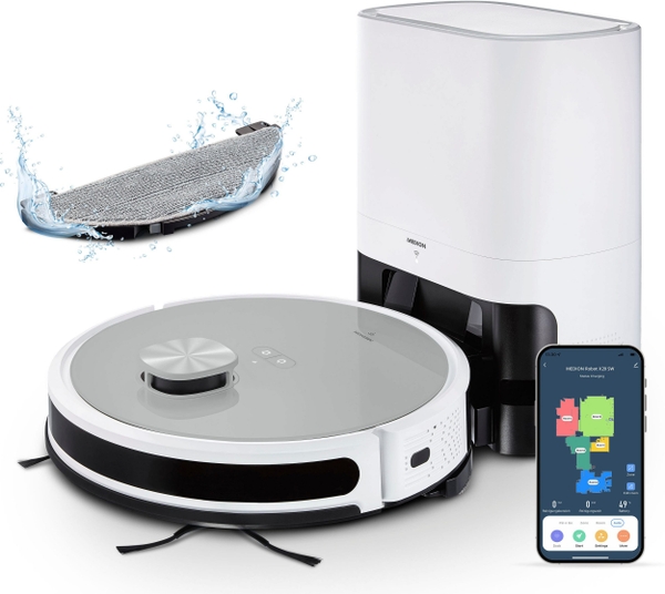 Nhờ điều hướng thông minh, Robot hút bụi lau nhà Medion X21 SW+ tự hoạt động dễ dàng. Nó bao quanh đồ đạc và các chướng ngại vật khác một cách đáng tin cậy trong khi hút bụi bẩn, phấn hoa, bụi và lông vật nuôi với lực hút động cơ mạnh mẽ. Nhờ hai chế độ hoạt động và khả năng điều chỉnh lượng nước sử dụng, nó đảm bảo độ sạch tốt nhất trên mọi bề mặt từ sàn gỗ đến thảm và gạch lát nền.