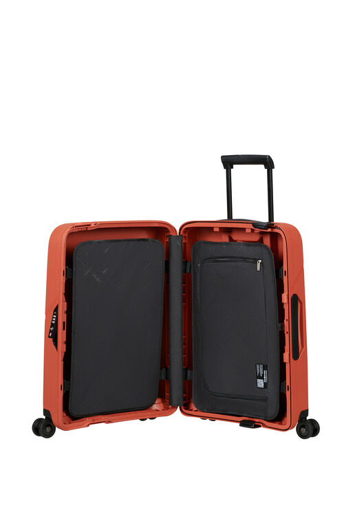 Hai nửa của vali Magnum Eco Spinner được giữ với nhau thông qua một thanh kim loại được luồn qua các lỗ bản lề cho phép vali mở 2 nửa theo chiều ngang 180 độ, giống như một chiếc vỏ sò. Nội thất rộng rãi và không có túi lót và túi tổ chức, ngoài một túi zip lớn được tích hợp vào một trong các tấm ngăn. Vali Magnum Eco không sử dụng đai co giãn truyền thống. Thay vào đó, nó sử dụng các tấm ngăn có chức năng gấp đôi màn hình riêng tư và thực hiện công việc bảo mật nội dung tốt hơn nhiều để chúng không bị dịch chuyển trong quá trình vận chuyển.